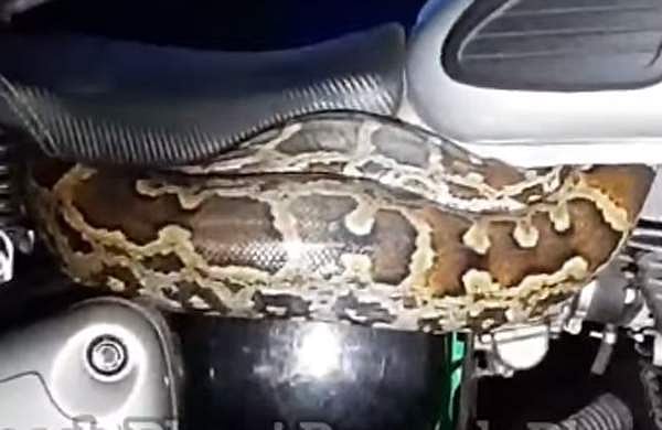 റോയല് എന്ഫീല്ഡ് ക്ലാസിക് 350 ബൈക്കിലാണ് പെരുമ്പാമ്പ് ഇഴഞ്ഞുകയറിയത്. സീറ്റിനടിയില് ചുറ്റിയിരുന്ന പാമ്പിനെ പാമ്പ് പിടിത്ത വിദഗ്ധന് എത്തിയാണ് പിടികൂടിയത്. രമേശ് ഭോവി പങ്കുവെച്ച ദൃശ്യങ്ങളാണ് വൈറലാകുന്നത്.