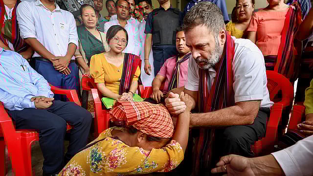പ്രതിപക്ഷ നേതാവായതിന് ശേഷം ആദ്യമായാണ് രാഹുല് ഗാന്ധി മണിപ്പൂര് സന്ദര്ശിക്കുന്നത്. പ്രശ്നങ്ങള് തുടങ്ങിയതിന് ശേഷം ഇത് മൂന്നാം തണവയാണ് രാഹുല് ഇവിടെ സന്ദര്ശിക്കുന്നത്. രാവിലെ അസമിലെ കാച്ചാര്, സില്ച്ചര് എന്നിവിടങ്ങളിലെ പ്രളയ ബാധിതരെ കണ്ട ശേഷമാണ് രാഹുല് മണിപ്പൂരിലെ ജിരിബാമിലെത്തിയത്. ചുരാചന്ദ്പൂര്, മൊയ്റാങ്, എന്നിവിടങ്ങളിലെ കുക്കി -മെയ്തെയ് ക്യാമ്പുകളും രാഹുല് ഗാന്ധി സന്ദര്ശിച്ചു.