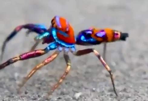 എട്ടുകാലി എന്ന് കേള്ക്കുമ്പോള് തന്നെ ചിലര്ക്ക് പേടിയാണ്. ഇടുങ്ങിയ സ്ഥലത്ത് വലിയ എട്ടുകാലിയെ കണ്ടാല് ധൈര്യമെല്ലാം ചോര്ന്നുപോകുന്നവരാണ് നല്ലൊരു ശതമാനം ആളുകള്. എന്നാല് ഈ എട്ടുകാലിയെ കണ്ടാല് ആരും ഭയപ്പെടില്ല. ചിത്രശലഭത്തെ പോലെ നിറയെ വര്ണ്ണങ്ങള് വാരിവിതറിയിരിക്കുന്ന ഒരു എട്ടുകാലിയാണ് ഇപ്പോള് സോഷ്യല്മീഡിയയിലെ താരം.