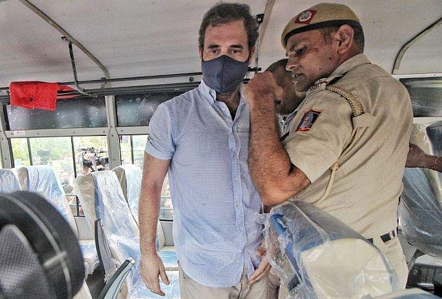 രാഹുല്‍ ഗാന്ധി പൊലീസ് വാഹനത്തില്‍/ ട്വിറ്റര്‍ ചിത്രം