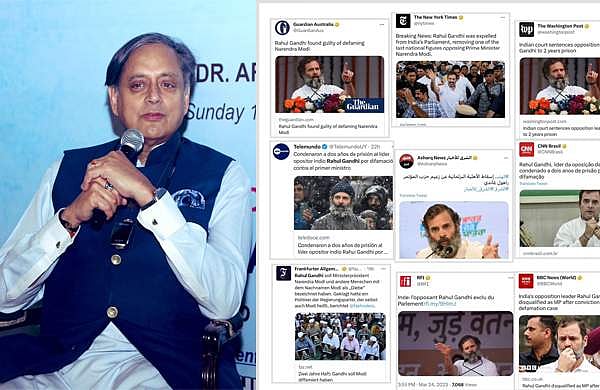 ഒരു ശബ്ദത്തെ നിശബ്ദമാക്കാൻ ശ്രമിച്ചു എന്നാൽ ലോകത്തിന്റെ ഓരോ മുക്കും ഇപ്പോൾ ഇന്ത്യയുടെ ശബ്ദം കേൾക്കുന്നവെന്ന് കോൺഗ്രസ് എംപി ശശി തരൂർ. രാഹുൽ ഗാന്ധിയെ അയോഗ്യനാക്കിയെന്ന വാർത്ത വിദേശ മാധ്യമങ്ങൾ റിപ്പോർട്ട് ചെയ്തതിന്റെ സ്ക്രീൻഷോട്ടുകൾ ട്വിറ്ററിൽ പങ്കുവെച്ചായിരുന്നു തരൂരിന്റെ പോസ്റ്റ്.