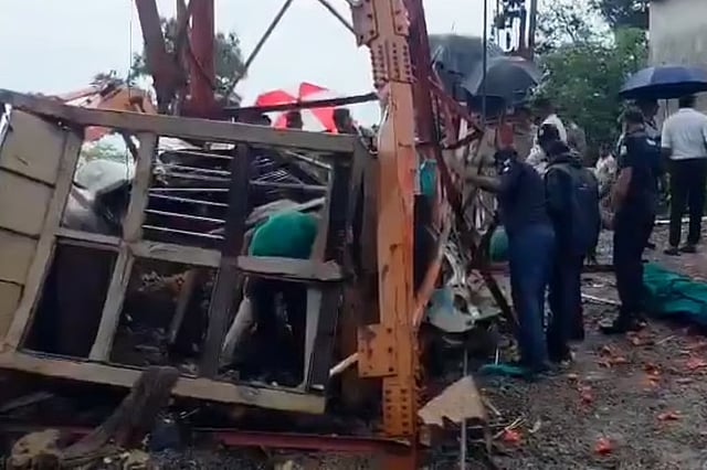 അഹമ്മദാബാദ്: ക്ഷേത്രത്തിലേക്കുള്ള കാര്ഗോ റോപ്വേ കേബിള് പൊട്ടിവീണുണ്ടായ അപകടത്തില് ആറ് മരണം. ഗുജറാത്തിലെ പഞ്ച്മഹല് ജില്ലയിലെ പ്രശസ്തമായ പാവഗഡ് ക്ഷേത്രത്തിലേക്കുള്ള റോപ്വേ ആണ് പൊട്ടിവീണത്. ആറ് മരണങ്ങള് സ്ഥിരീകരിച്ചിട്ടുണ്ടെന്ന് പോലീസ് സൂപ്രണ്ട് ഹരേഷ് ദുധത്തിനെ ഉദ്ധരിച്ച് റിപ്പോര്ട്ടുകള് പറയുന്നു. ശനിയാഴ്ച വൈകീട്ട് 3.30 ഓടെയായിരുന്നു അപകടം.