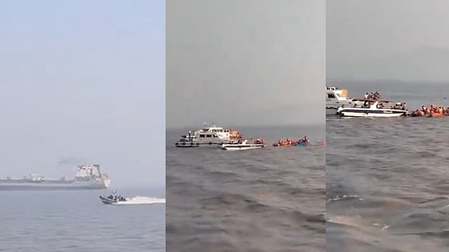 നാവികസേന, ജവഹര്ലാല് നെഹ്റു തുറമുഖ അതോറിറ്റി, കോസ്റ്റ് ഗാര്ഡ്, യെല്ലോ ഗേറ്റ് പൊലീസ്, പ്രാദേശിക മത്സ്യത്തൊഴിലാളികള് എന്നിവര് ചേര്ന്നാണ് രക്ഷാപ്രവര്ത്തനം നടത്തുന്നത്.