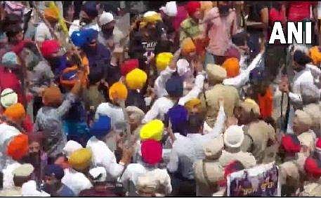 ഇതിനിടെ, ഏതാനും സിഖ് സംഘടനകളുടെ നേതൃത്വത്തില് ഒരു സംഘമാളുകള് മാര്ച്ചിന് നേരെ പ്രതിഷേധവുമായെത്തി. മാര്ച്ചിന് നേര്ക്ക് കല്ലേറ് നടത്തിയ സംഘം തെരുവില് വാളുകളുമായി ശിവസേന പ്രവര്ത്തകരെ നേരിട്ടു. ഇതോടെ ശിവസേനക്കാരും തിരികെ കല്ലേറ് ആരംഭിച്ചു.