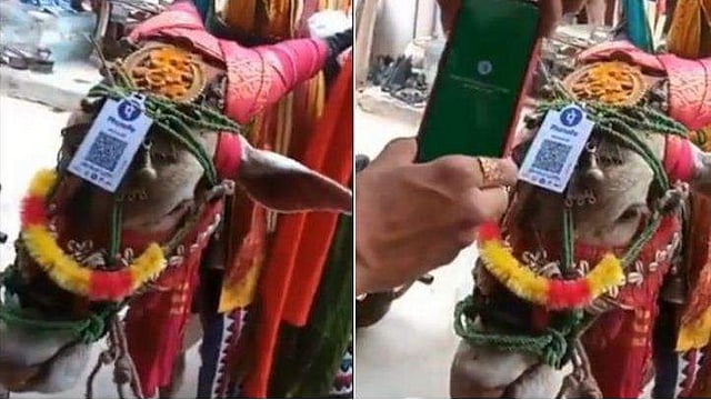 നേർച്ചയ്ക്കായി കൊണ്ടു നടക്കുന്ന ഒരു കാളയാണ് ഇവിടെ താരം. യുപിഐ സ്കാനിങ് കോഡ് തലയിൽ തൂക്കിയ കാളയാണ് വീഡിയോയിലുള്ളത്. തമിഴ്നാട്, ആന്ധ്രാ പ്രദേശ്, തെലങ്കാന സംസ്ഥാനങ്ങളിൽ നടത്തിവരുന്ന ഗംഗിരെദ്ദു എന്ന ആചാരത്തിന്റെ ഭാഗമായാണ് ഇത്തരം കാളകൾ എല്ലാ വീടുകളിലുമെത്തുന്നത്.