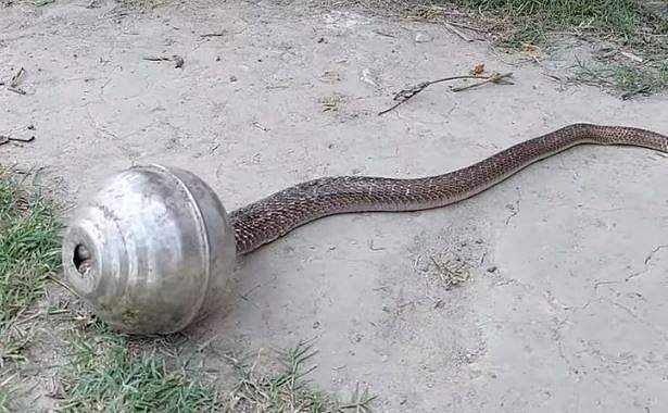 പാമ്പ് എന്ന് കേള്ക്കുമ്പോള് തന്നെ ഭയപ്പെടുന്നവരാണ് ഭൂരിഭാഗം ആളുകളും. പാമ്പിനെ നേരിട്ട് കണ്ടാലോ, പറയുകയും വേണ്ട!. ഇപ്പോള് പാത്രത്തില് കുടുങ്ങിയ പാമ്പിന്റെ ദൃശ്യമാണ് വൈറലാകുന്നത്.