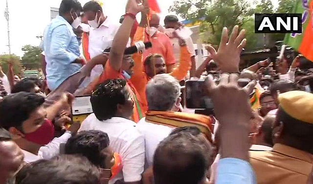 അനുമതിയില്ലാതെ യാത്ര നടത്തി എന്നാരോപിച്ചാണ് മുരുഗനെയും ബിജെപി നേതാക്കളെയും പൊലീസ് അറസ്റ്റ് ചെയ്തത്