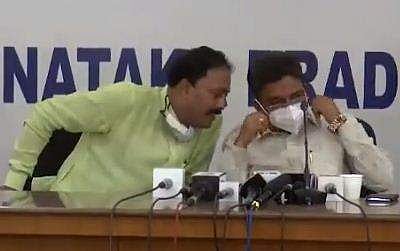 ഡികെ.ശിവകുമാറും അദ്ദേഹത്തിന്റെ സഹായികളും കൈക്കൂലി വാങ്ങുമെന്നും മദ്യപനാണെന്നും അടക്കംപറയുന്ന വീഡിയോ ആണ് പുറത്തായത്. പാര്ട്ടി മുന് എംപി വിഎസ് ഉഗ്രപ്പയും സലീമും തമ്മില് അടക്കം പറഞ്ഞതാണ് പുറത്തായത്. ഇരുവരും കഴിഞ്ഞ ദിവസം പത്രസമ്മേളനം വിളിച്ചിരുന്നു. പത്രസമ്മേളനം തുടങ്ങുന്നതിന് മുമ്പായിട്ടാണ് നേതാക്കള് പരസ്പരം ചെവിയില് പറഞ്ഞത്. എന്നാല് മാധ്യമങ്ങളുടെ മൈക്ക് ഓണായിരുന്ന കാര്യം ഇരുവരും അറിഞ്ഞില്ല.