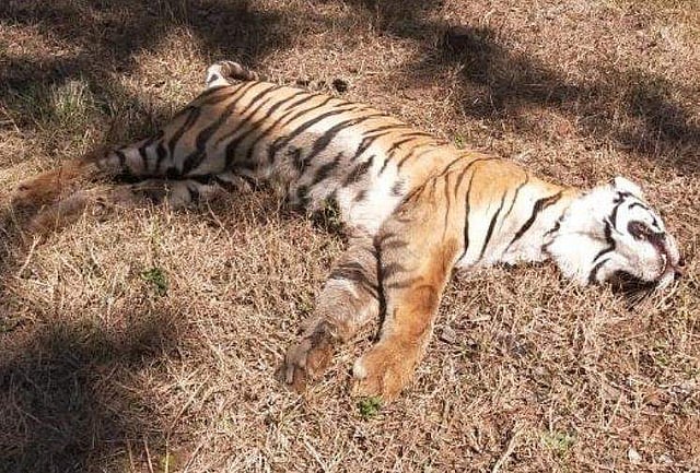 അവ്നി എന്ന കടുവ വെടിയേറ്റ് ചത്ത നിലയിൽ/ ട്വിറ്റർ