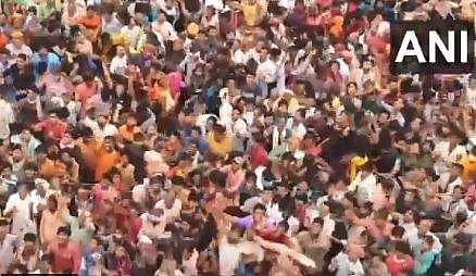 ബര്സാനയിലെ ശ്രീ രാധ റാണി ക്ഷേത്രത്തില് തിങ്കളാഴ്ചയാണ് സംഭവം.ജനം സാമൂഹിക അകലം പാലിക്കാതെയാണ് തടിച്ചുകൂടിയത്. ഹോളിയോടനുബന്ധിച്ച് നടത്തിയ ലഡുവിതരണത്തിനാണ് ജനം കൂട്ടത്തോടെ എത്തിയത്. ശ്രീകോവിലിന്റെ മുകള് ഭാഗത്ത് നിന്ന് ക്ഷേത്രത്തിലെ ജീവനക്കാരാണ് ലഡു താഴേക്ക് എറിഞ്ഞുകൊടുത്തത്. പ്രസാദം വാങ്ങാനാണ് ഭക്തര് തടിച്ചുകൂടിയത്. ഇതില് കുറച്ചുപേര്ക്ക് മാത്രമാണ് മാസ്ക് ഉള്ളത്. ആരും സാമൂഹിക അകലം പാലിക്കുന്നില്ല എന്ന് ദൃശ്യങ്ങളില് വ്യക്തമാണ്.