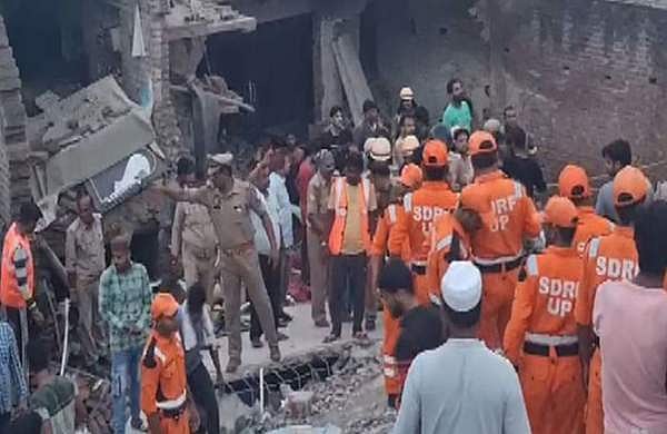 റോഷ്നി ബാനോ (22), ഹക്കിമുദ്ദീന് (28) എന്നിവരാണ് മരിച്ചത്. പുലര്ച്ചെ മൂന്നുമണിയോടെയാണ് വലിയ ശബ്ദത്തോടെ മൂന്നു നില കെട്ടിടം തകര്ന്നു വീണത്.