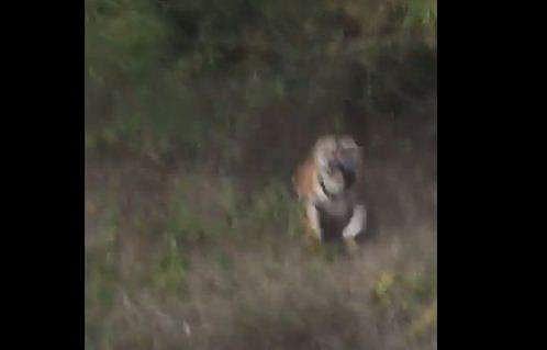 ജീപ്പ് ലക്ഷ്യമാക്കി കുതിച്ചെത്തുന്ന കടുവയുടെ ദൃശ്യം