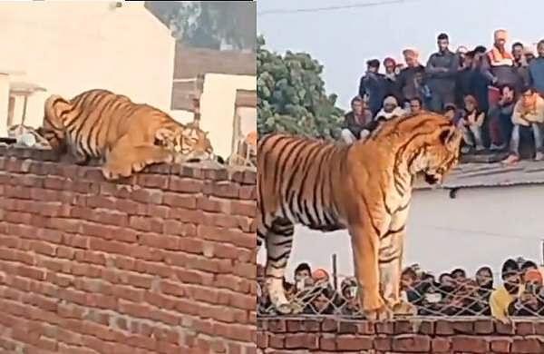 പിലിബിത്ത് ജില്ലയിലെ കടുവാസംരക്ഷണ കേന്ദ്രത്തില് നിന്നാണ് കടുവ കാളിനഗറിലെ അറ്റ്കോണ ഗ്രാമത്തില് എത്തിയത്. മതിലില് വിശ്രമിക്കുന്ന കടുവയെ കണ്ട് തെരുവുനായ്ക്കള് കൂട്ടത്തോടെ കുരയ്ക്കാന് തുടങ്ങിയതോടെയാണ് നാട്ടുകാരുടെ ശ്രദ്ധയില്പ്പെട്ടത്. കടുവയെ കണ്ടതോടെ പരിഭ്രാന്തിയിലായ നാട്ടുകാര് കടുവയ്ക്ക് ചുറ്റിലും തടിച്ചുകൂടി.