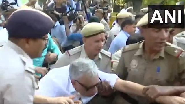 കൊല്ക്കത്ത: കേന്ദ്ര അന്വേഷണ ഏജന്സികളുടെ മേധാവിമാരെ മാറ്റണമെന്നാവശ്യപ്പെട്ട് ധര്ണ്ണ സംഘടിപ്പിച്ച തൃണമൂല് കോണ്ഗ്രസ് നേതാക്കള് കസ്റ്റഡിയില്. സിബിഐ, എന്ഐഎ, എന്ഫോഴ്സ്മെന്റ് ഡയറക്ട്രേറ്റ്, ആദായനികുതി വകുപ്പ് എന്നിവയുടെ മേധാവിമാരെ മാറ്റണമെന്നാവശ്യപ്പെട്ട് ഡല്ഹിയില് തെരഞ്ഞെടുപ്പ് കമ്മീഷന് ഓഫീസിന് മുന്നിലാണ് ടിഎംസി ധര്ണ നടത്തിയത്. തൃണമൂല് കോണ്ഗ്രസ് നേതാക്കളായ ഡെറിക് ഒബ്രെയിന്, മുഹമ്മദ് നദിമുല് ഹക്ക്, ഡോല സെന്, സാകേത് ഖോഗലെ, സാഗരിക ഗോസ്, വിവേക് ഗുപ്ത, അര്പിത ഘോഷ്, സാന്തനു സെന്, അബിര് രഞ്ജന് ബിശ്വാസ്, സുദീപ് രാഹ എന്നിവരാണ് പ്രതിഷേധത്തില് പങ്കെടുത്തത്.