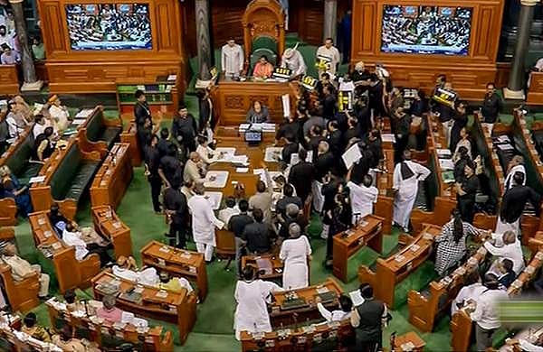 അദാനി വിവാദത്തില് ജെപിസി അന്വേഷണം ആവശ്യപ്പെട്ടുള്ള പ്ലക്കാര്ഡുകളും ചെയറിന് നേരെ വലിച്ചെറിഞ്ഞു. സ്ഥിതി വഷളായതോടെ നാല് മണിവരെ ലോക് സഭ നിര്ത്തിവച്ച് സ്പീക്കര് മടങ്ങി. രൂക്ഷമായ മുദ്രാവാക്യങ്ങളുമായി രാജ്യസഭയിലും പ്രതിപക്ഷം പ്രതിഷേധം കടുപ്പിച്ചു. നിമിഷങ്ങള്ക്കുള്ളില് രാജ്യസഭയും പിരിഞ്ഞു. തുടര്ന്ന് ഗാന്ധി പ്രതിമക്ക് മുന്പിലേക്ക് പ്രതിഷേധം മാറ്റി. രാഹുല് ഗാന്ധിയെ അയോഗ്യനാക്കിയത് ജനാധിപത്യത്തിലെ കറുത്ത അധ്യായമാണെന്ന സന്ദേശം നല്കി കറുത്ത വസ്ത്രവും മാസ്കും ധരിച്ചെത്തിയ എംപിമാര് വിജയ് ചൗക്കിലേക്ക് പ്രതിഷേധ മാര്ച്ച് നടത്തി.