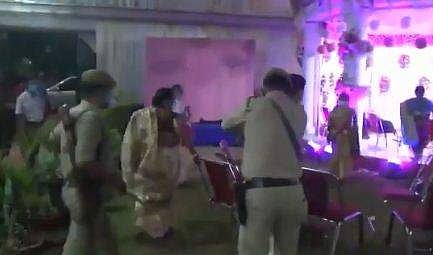 അഗര്‍ത്തലയിലാണ് സംഭവം നടന്നത്. ത്രിപുര ഇന്‍ഡിജന്‍സ് പ്രോഗസീവ് റീജിണല്‍ അലയന്‍സ് ചെയര്‍മാന്റെ ഉടമസ്ഥതയിലുള്ള കല്യാണ വേദിയിലാണ് ജില്ലാ കലക്ടര്‍ വിവാഹം തടഞ്ഞത്. ഉടന്‍ തന്നെ വേദി വിട്ടുപോകാന്‍ വധുവരന്മാരോടും കുടുംബാംഗങ്ങളോടും സൈലേഷ് കുമാര്‍ ആവശ്യപ്പെടുന്നത് വീഡിയോയില്‍ വ്യക്തമാണ്. കോവിഡ് ചട്ടങ്ങളുടെ ലംഘനം ചൂണ്ടിക്കാട്ടി അതിഥികളെ ഉടന്‍ തന്നെ സ്ഥലത്ത് നിന്ന് നീക്കം ചെയ്യാനും അദ്ദേഹം പൊലീസിനോട് ആവശ്യപ്പെട്ടു. കല്യാണം നടത്താന്‍ അധികൃതര്‍ നല്‍കിയ അനുമതി രേഖ കാണിച്ചപ്പോള്‍ അത് ജില്ലാ കലക്ടര്‍ കീറിക്കളയുന്നതും വീഡിയോയില്‍ വ്യക്തമാണ്.