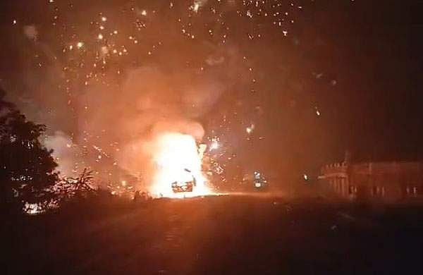 വെടിമരുന്നിന് തീപിടിച്ച് ട്രക്ക് കത്തിനശിക്കുന്നതിന്റെ വീഡിയോ സമൂഹമാധ്യമങ്ങളില് വ്യാപകമായി പ്രചരിക്കുന്നുണ്ട്. അപകടത്തിന് മൂന്നു മണിക്കൂറിനുശേഷമാണ് ട്രക്കിലെ തീ അണയ്ക്കാനായതെന്ന് ഉദ്യോഗസ്ഥരെ ഉദ്ധരിച്ച് ദേശീയ മാധ്യമങ്ങള് റിപ്പോര്ട്ട് ചെയ്തു. ട്രക്കിനു തീപിടിച്ചത് എങ്ങനെയെന്നു വ്യക്തമല്ല. തീപിടിത്തത്തിന്റെ കാരണം ഇതുവരെ അറിവായിട്ടില്ല. സംഭവത്തില് ആര്ക്കും പരിക്കേറ്റതായി റിപ്പോര്ട്ടില്ല.
