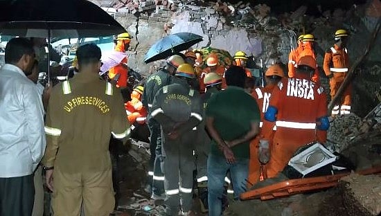 15 പേരാണ് കെട്ടിടത്തിൽ ഉണ്ടായിരുന്നത്. രക്ഷാപ്രവർത്തനം തുടരുകയാണ്. എൻഡിആർഎഫ്, എസ്ഡിആർഎഫ് സംയുക്തമായാണ് രക്ഷാപ്രവർത്തനം നടത്തുന്നത്. കഴിഞ്ഞ കുറച്ചു ദിവസങ്ങളായി തുടരുന്ന കനത്ത മഴയാണ് കെട്ടിടം തകരുന്നതിനു വഴിവച്ചതെന്നാണു സൂചന.