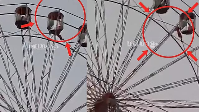 ബുധനാഴ്ച രാത്രിയാണ് സംഭവം. ജയന്റ് വീലില് വീട്ടുകാര്ക്കൊപ്പം കയറിയ പെണ്കുട്ടി മുകളിലെത്തിയപ്പോള് ഭയന്നു. ക്യാബിനുള്ളില് നിന്ന് പുറത്തേക്ക് വീഴുകയും ചെയ്തു. വീണെങ്കിലും ഇരുമ്പ് കമ്പിയില് പിടിച്ച് തൂങ്ങിക്കിടന്നു. അപകടം മനസിലാക്കിയ ഓപ്പറേറ്റര് സാവധാനത്തില് ജയന്റ് വീല് ചലിപ്പിച്ചു. അതുവരെ ഇരുമ്പ് കമ്പിയില് മുറുക്കെ പിടിച്ച് പെണ്കുട്ടി കിടന്നു.