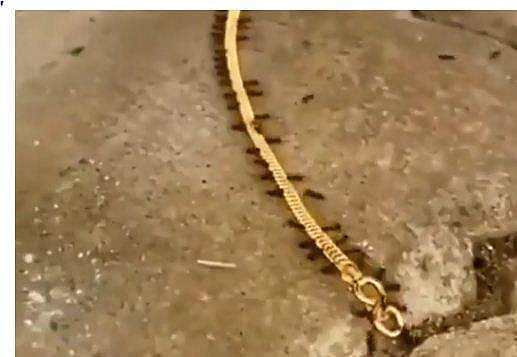 അധ്വാനമൊക്കെ ശരി തന്നെ, എന്നാലും ഇതിത്തിരി കൂടുതലല്ലേ എന്നാണ് വൈറല്‍ ആയ ഈ പുതിയ വിഡോയ കണ്ട് സൈബര്‍ ലോകം ചോദിക്കുന്നത്. അരിമണിയോ പഞ്ചസാരയോ ഒന്നുമല്ല, ഒരു സ്വര്‍ണമാലയാണ് ഇതില്‍ ഉറുമ്പുകള്‍ ചുമന്നുകൊണ്ടുപോവുന്നത്. എന്തായാലും സ്വര്‍ണക്കടത്തുകാരനെ ആരോ വിഡിയോയില്‍ കുടുക്കി, കൈയോടെ ഇന്റര്‍നെറ്റിലെത്തിച്ചു. വൈറല്‍ ആയി പറക്കുകയാണ് ഉറുമ്പുകളുടെ സ്വര്‍ണക്കടത്ത്.