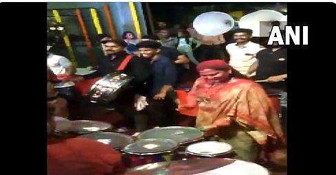 മുംബൈ: മുഖ്യമന്ത്രിയായി ചുമതലയേറ്റ ശേഷം ആദ്യമായി താനെയിലെ വീട്ടിലെത്തിയ ഏക്‌നാഥ് ഷിന്‍ഡെയ്ക്ക് ഗംഭീര വരവേല്‍പ്പ് നല്‍കി ഭാര്യ ലത. ഡ്രംസ് അടിച്ച് വരവേറ്റാണ് മുഖ്യമന്ത്രിയായ ഭര്‍ത്താവിനെ വരവേറ്റത്.