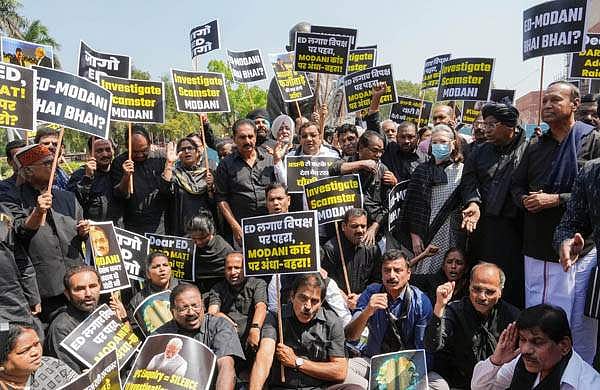 ന്യൂഡല്ഹി: രാഹുല് ഗാന്ധിയെ ലോക്സഭയില് നിന്ന് അയോഗ്യനാക്കിയ നടപടിയില് പ്രതിഷേധിച്ച് കറുപ്പണിഞ്ഞ് പ്രതിപക്ഷം. പാര്ലമെന്റില് കറുത്ത വസ്ത്രവും കറുത്ത മാസ്കും അണിഞ്ഞെത്തിയായിരുന്നു പ്രതിഷേധം. കോണ്ഗ്രസ് നേതാവ് സോണിയ ഗാന്ധി കറുത്ത് സ്കാര്ഫ് ധരിച്ചെത്തിയപ്പോള് മറ്റ് ചില അംഗങ്ങള് കറുത്ത ഷര്ട്ട് ധരിച്ചാണ് എത്തിയത്. നാഷണല് കോണ്ഫറന്സ് നേതാവ് ഫാറുഖ് അബ്ദുള്ള കറുത്ത കുര്ത്ത ധരിച്ചാണ് എത്തിയത്. കറുത്ത വസ്ത്രം ധരിച്ച് വരാന് പാര്ട്ടി എംപിമാര്ക്ക് കോണ്ഗ്രസ് നേതൃത്വം നിര്ദേശം നല്കിയിരുന്നു.