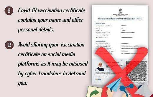 കോവിഡ് വാക്സിന് സ്വീകരിച്ച പലരും സര്ട്ടിഫിക്കറ്റുകള് സോഷ്യല് മീഡിയയില് അപ്ലോഡ് ചെയ്യുന്നതായി ശ്രദ്ധയില്പ്പെട്ടിട്ടുണ്ട്. ഈ പശ്ചാത്തലത്തിലാണ് കേന്ദ്ര ആഭ്യന്തര മന്ത്രാലയം സൈബര് സുരക്ഷ ബോധവത്കരണ ട്വിറ്റര് ഹാന്ഡിലായ സൈബര് ദോസ്ത് അക്കൗണ്ടിലൂടെ മുന്നറിയിപ്പ് നല്കിയിരിക്കുന്നത്. വ്യക്തിഗത വിവരങ്ങള് ഉള്പ്പെട്ടതിനാല് വാക്സിനേഷന് സര്ട്ടിഫിക്കറ്റ് സോഷ്യല് മീഡിയ പ്ലാറ്റ്ഫോമുകളില് പങ്കുവെയ്ക്കരുത്. അവ സൈബര് തട്ടിപ്പ് സംഘങ്ങള് ദുരുപയോഗം ചെയ്യാനിടയുണ്ടെന്നുമാണ് മുന്നറിയിപ്പ്.