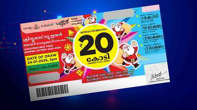 തിരുവനന്തപുരം: കേരള സംസ്ഥാന ഭാഗ്യക്കുറിയുടെ ക്രിസ്മസ് -പുതുവത്സര ബമ്പര് ഭാഗ്യക്കുറി നറുക്കെടുപ്പ് ഫലം പ്രഖ്യാപിച്ചു. കോട്ടയത്ത് വിറ്റ xc 138455 എന്ന നമ്പറിലുള്ള ടിക്കറ്റിനാണ് ഒന്നാം സമ്മാനമായ 20 കോടി രൂപ. രണ്ടാം സമ്മാനമായി ഒരു കോടി രൂപ വീതം 20 പേര്ക്കാണ് ലഭിച്ചത്. XD 241658, XD 286844, XB 182497, XK 489087, XC 362518, XK 464575, XA 226117, XB 413318, XL 230208, XC 103751 എന്നി നമ്പറുകളിലുള്ള ടിക്കറ്റുകള്ക്കാണ് രണ്ടാം സമ്മാനം.