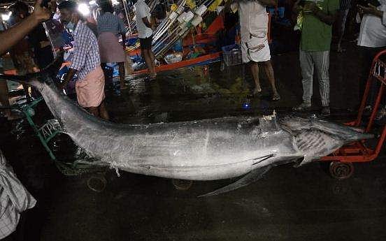 രണ്ട് ട്രോളികള് ചേര്ത്ത് വെച്ച് അതില് കിടത്തിയാണ് ബോട്ടില് നിന്നും മീനിനെ ലേല ഹാളില് എത്തിച്ചത്. നീണ്ട ചുണ്ട് കൂടാതെ തന്നെ എതാണ്ട് 12 അടിക്ക് മേല് നീളമുണ്ടായിരുന്നു ഇതിന്.