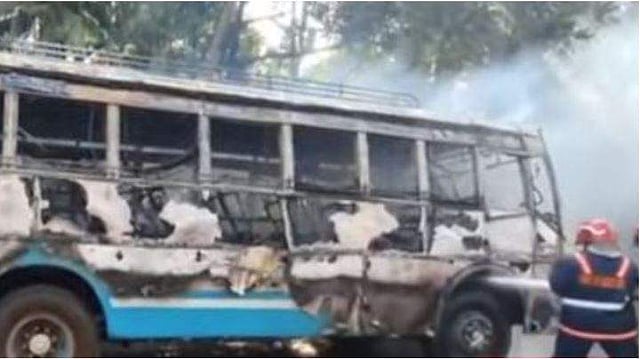 ഡ്രൈവറുടെ സീറ്റിന്റെ സൈഡിൽ നിന്ന് തീപ്പൊരി ഉയരുന്നതാണ് ആദ്യം ശ്രദ്ധയിൽപ്പെട്ടത്. തുടർന്ന് പുക ഉയരാൻ തുടങ്ങി. ശക്തമായ പുക ഉയർന്നതോടെ ബസ് ജീവനക്കാർ യത്രക്കാരെ പുറത്തിറക്കി. യാത്രക്കാർ പുറത്തിറങ്ങിയതിന് പിന്നാലെ ബസ് പൂർണമായും ആളിക്കത്തി തീപിടിച്ചു. ആഗ്നിരക്ഷാ സേനാ അംഗങ്ങൾ എത്തി തീ പൂർണമായും അണച്ചു.