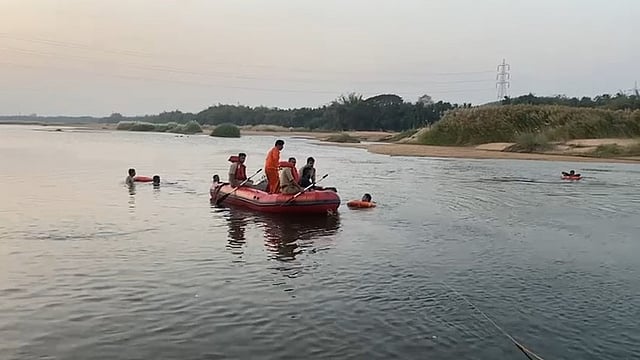 തൃശൂർ: ഭാരതപ്പുഴയിൽ കുളിക്കാൻ ഇറങ്ങിയ നാലംഗ കുടുംബം ഒഴുക്കിൽപ്പെട്ടു. ഒരാൾ മരിച്ചു. കുടുംബത്തിലെ ബാക്കി മൂന്ന് പേരെ കണ്ടെത്തിയിട്ടില്ല. ഇവർക്കായി തിരച്ചിൽ തുടരുകയാണ്. അഗ്നിരക്ഷാ സേനയും പൊലീസും സ്ഥലത്തുണ്ട്. ഭാര്യയും ഭർത്താവും മകളും 12കാരനായ ബന്ധുവുമാണ് അപകടത്തിൽപ്പെട്ടത്.