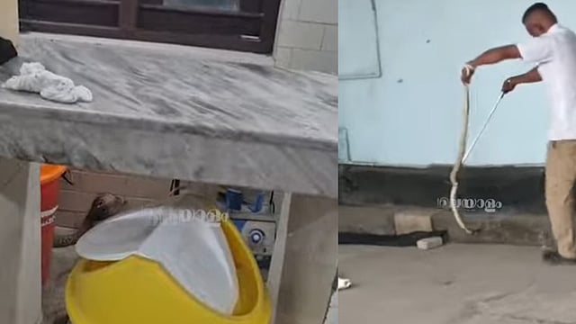 ആശുപത്രിയുടെ വിവിധ ഭാഗങ്ങളില് രണ്ടാഴ്ചയായി പാമ്പിനെ കണ്ടിരുന്നതായി രോഗികള് പറഞ്ഞു. ആശുപത്രി ജീവനക്കാരനും സ്നേക് റെസ്ക്യൂവറുമായ സുധീഷ്. കെ.പി പാമ്പിനെ പിടികൂടി വനംവകുപ്പിന് കൈമാറി.