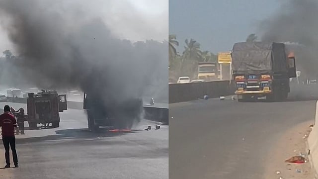 എറണാകുളത്ത് നിന്നും പ്ലൈവുഡ് കയറ്റി പൂനെയിലേക്ക് പോവുകയായിരുന്ന മഹാരാഷ്ട്ര രജിസ്ട്രേഷന് നാഷണല് പെര്മിറ്റ് ലോറിക്കാണ് തീപിടിച്ചത്. ലോറിയുടെ കാബിന് കത്തി നശിച്ചു. കണ്ണൂരില് നിന്നും അഗ്നിരക്ഷാ സേനയെത്തി തീയണച്ചു. ഷോര്ട്ട് സര്ക്യൂട്ടാണ് കാരണമെന്നാണ് പ്രാഥമിക നിഗമനം. ഡ്രൈവര് ഉള്പ്പെടെ രണ്ടു പേരാണ് വാഹനത്തില് ഉണ്ടായിരുന്നത്. എഞ്ചിനില് നിന്നും തീ ഉയരുന്നതു കണ്ട് വാഹനം ഒരു വശത്തേക്കൊതുക്കി രക്ഷപ്പെടാന് ഇവര് ഇറങ്ങി ഓടുകയായിരുന്നു.