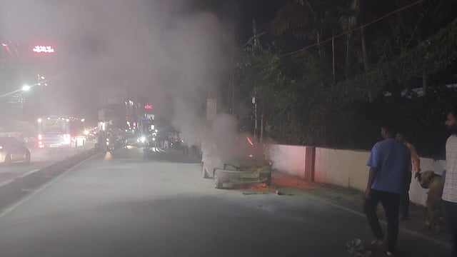 കാറില് നിന്നും പുക ഉയരുന്നതു കണ്ട നാട്ടുകാര് വിവരമറിയിച്ചതിനെ തുടര്ന്നാണ് കണ്ണൂരില് നിന്നെത്തിയ ഫയര്ഫോഴ്സ് സംഘം തീയണച്ചത്. തീപിടിത്തത്തെ തുടര്ന്ന് ദേശീയപാതയില് ഗതാഗതം മുടങ്ങി. സംഭവത്തില് ആളപായമില്ല.