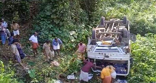എരുമേലി കണ്ണിമലയ്ക്കു സമീപം ഇന്ന് ഉച്ചയ്ക്കാണ് അപകടമുണ്ടായത്. ശബരിമലയ്ക്കു പോവുകയായിരുന്ന ഇവരുടെ വാഹനം താഴ്ചയിലേക്കു മറിയുകയായിരുന്നു.