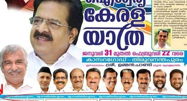 വിവാദമായ ഐശ്വര്യകേരളയാത്രയുടെ പരസ്യം