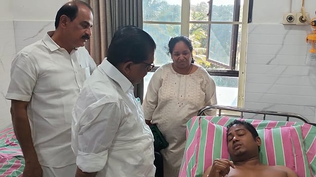 തൃശൂര്: അന്തിക്കാട് പൊലീസിന്റെ മര്ദനത്തില് ഗുരുതരമായി പരിക്കേറ്റ് ചികിത്സയില് കഴിയുന്ന അരിമ്പൂര് സ്വദേശി അഖില് യേശുദാസിനെ സന്ദര്ശിച്ച് വി എം സുധീരന്. ഡിസിസി ജന. സെക്രട്ടറി അഡ്വ. വി സുരേഷ് കുമാറിന് ഒപ്പമാണ് മുതിര്ന്ന നേതാവും മുന് കെപിസിസി പ്രസിഡന്റുമായ വി എം സുധീരന് തൃശൂര് ദയ ആശുപത്രിയില് എത്തിയത്.
