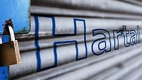 പെരിന്തല്മണ്ണ മുസ്ലീം ലീഗ് ഓഫീസിനു നേരെ കല്ലേറുണ്ടായതില് പ്രതിഷേധിച്ചാണ് ഹര്ത്താല്. സിപിഎം പ്രവര്ത്തകരാണ് ആക്രമണത്തിനു പിന്നിലെന്ന് മുസ്ലീം ലീഗ് ആരോപിച്ചു. നജീബ് കാന്തപുരം എംഎല്എയുടെ നേതൃത്വത്തില് മുസ്ലീം ലീഗ് പ്രവര്ത്തകര് പെരിന്തല്മണ്ണയില് റോഡ് ഉപരോധിച്ച് പ്രതിഷേധിച്ചു.