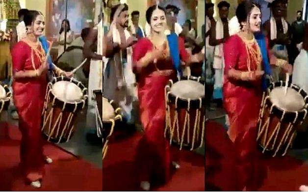 തൃശൂർ: പതിവു രീതികളിൽ നിന്നു വിത്യസ്തമായി ഒരു വിവാഹം. താലി കെട്ടിന് ശേഷം വധു ചെണ്ടയുമായി വേദിയിലെത്തി. ഇതുകണ്ട് സദസ് ആദ്യം ഒന്നു അമ്പരന്നു. വധു വേദിയിലെത്തിയതിന് പിന്നാലെ പൊന്നൻസ് ശിങ്കാരി മേളത്തിലെ കലാകാരൻമാരും എത്തി. ഇവർക്കൊപ്പം വധു ശിങ്കാരി മേളം കൊട്ടി തുടങ്ങി. കൊട്ട് തുടങ്ങിയതോടെ വധുവിന്റെ അച്ഛനും വരനും ഒപ്പം കൂടി. അതോടെ സംഗതി കളറായി. ആദ്യം അമ്പരന്നു നിന്ന അതിഥികളും പിന്നീട് ഹാപ്പി. അവരും സന്തോഷ നൃത്തം തുടങ്ങി.