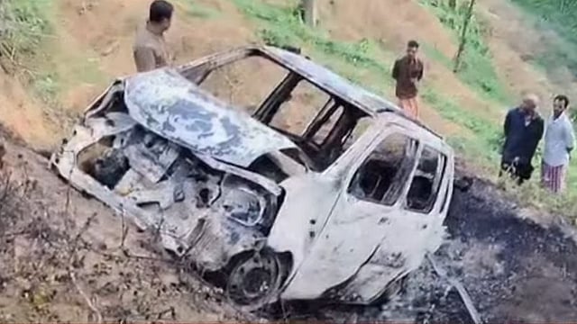 ഇന്നലെ രാത്രിയാണ് സംഭവം. റബറുകള് മുറിച്ച പറമ്പില് കാര് താഴ്ചയിലേക്ക് മറിഞ്ഞ് കത്തിക്കരിഞ്ഞ നിലയില് രാവിലെയാണ് നാട്ടുകാര് കണ്ടെത്തുന്നത്. അബദ്ധത്തില് കാര് മറിഞ്ഞ് കത്തിയതാകാമെന്നാണ് പൊലീസിന്റെ പ്രാഥമിക നിഗമനം.