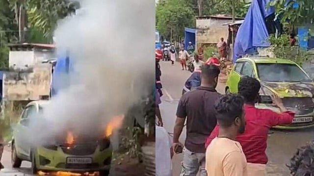 കാറില് നിന്നു പുക ഉയരുന്നത് കണ്ട നാട്ടുകാര് ബഹളം വെച്ചതോടെ ഡ്രൈവര് വാഹനത്തില് നിന്നു പുറത്തിറങ്ങിയത് അപകടം ഒഴിവാക്കി. കാറിന്റെ മുന്ഭാഗം പൂര്ണമായും കത്തി നശിച്ചു. ഫയര് ഫോഴ്സ് എത്തി തീയണച്ചു.