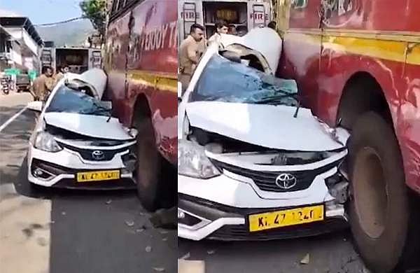 കാറിന്റെ ഒരു ഭാഗം പൂർണമായും ബസിനു പിന്നിലേക്ക് ഇടിച്ചുകയറി. ബസിന്റെ പിന്നിലെ ടയറിൽ ഇടിച്ചാണ് കാര് നിന്നത്. ബസിന്റെ അടിയിൽപ്പെട്ടു പോയ കാറിന്റെ ഭാഗം അഗ്നിരക്ഷാ സേന സ്ഥലത്തെത്തിയാണ് പുറത്തെടുത്തത്. നെടുമ്പാശേരി സ്വദേശിയായ കാർ ഡ്രൈവർ ഏബ്രഹാം, ഈരാറ്റുപേട്ട സ്വദേശിയായ യാത്രക്കാരൻ എന്നിവരാണ് കാറിലുണ്ടായിരുന്നത്.