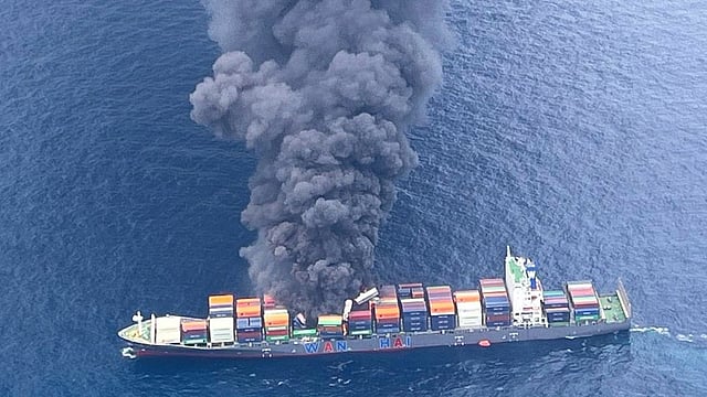 കൊളംബോയില് നിന്നു മുംബൈയിലേക്കുള്ള യാത്രാ മധ്യേ കേരളാ തീരത്ത് നിന്ന് 78 നോട്ടിക്കല് മൈല് അകലെ വെച്ചാണ് വാന്ഹായ് 503( MV WAN HAI 1503 ) എന്ന ചരക്കു കപ്പലില് അഗ്നി ബാധ ഉണ്ടായത്.അപകടത്തില്നിന്ന് രക്ഷപ്പെട്ട 18 പേരെ ചികിത്സക്കായി മംഗളൂരുവിലാണ് എത്തിച്ചത്.ഗുരുതരമായി പരിക്കേറ്റ ആറ് പേരെ മംഗളൂരു എ ജെ ആശുപത്രിയിലാണ് പ്രവേശിപ്പിച്ചത്.ഇതില് രണ്ടു പേരുടെ നിലയാണ് അതീവ ഗുരുതരമായി തുടരുന്നത്. ഐഎന്എസ് വിക്രാന്തില് മംഗളൂരു പോര്ട്ടില് എത്തിച്ച ജീവനക്കാരെ പ്രത്യേക ആംബുലന്സിലാണ് ആശുപത്രിയില് എത്തിച്ചത്.