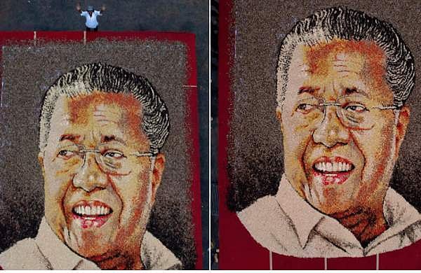 കൊല്ലം: കൊല്ലത്ത് നവകേരള സദസ്സ് നടക്കാനിരിക്കെ കശുവണ്ടി പരിപ്പ് ഉപയോഗിച്ച് മുഖ്യമന്ത്രി പിണറായി വിജയന്റെ രൂപം തീര്ത്ത് കലാകാരന്. 30 അടി വിസ്തീര്ണത്തില് കലാകാരന് ഡാവിഞ്ചി സുരേഷാണ് മുഖ്യമന്ത്രിയുടെ രൂപം നിര്മ്മിച്ചത്.