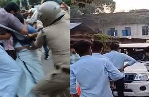 തെരഞ്ഞെടുപ്പ് ഇന്ന് നടക്കാനിരിക്കെ ഇന്നലെ ഐ ടി ഐക്ക് മുന്നിലെ കൊടിതോരണങ്ങള് പൊലീസ് അഴിപ്പിച്ചിരുന്നു. ഇതാണ് പ്രകോപനത്തിന് കാരണമെന്ന് കരുതുന്നു. പൊലീസുകാര് ജീപ്പിലിരിക്കെയാണ് പ്രവര്ത്തകര് ജീപ്പിന് മുകളില് വരെ കയറി അക്രമം അഴിച്ചുവിട്ടത്. പിന്നാലെ ജീപ്പിലുണ്ടായിരുന്ന പൊലീസുകാരെ ഇവര് ഭീഷണിപ്പെടുത്തുകയും ചെയ്തു.