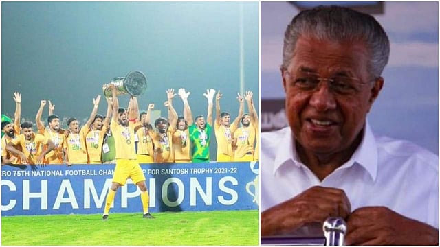 സന്തോഷ് ട്രോഫി കിരീടം നേടി കളിക്കളത്തിലും കേരളത്തെ ഒന്നാമതെത്തിച്ച് നാടിന്റെ അഭിമാനമായി മാറിയ കേരള ഫുട്ബോള് ടീമിന് അഭിനന്ദനങ്ങള്. ഈ ഉജ്ജ്വല വിജയം നമ്മുടെ കായിക മേഖലയുടെ ഭാവിയെക്കുറിച്ച് ശുഭപ്രതീക്ഷ പകരുന്നു. മത്സരങ്ങള്ക്ക് ഒഴുകിയെത്തിയ വമ്പിച്ച ജനക്കൂട്ടവും അവര് നല്കിയ പിന്തുണയും എടുത്തു പറയേണ്ട കാര്യമാണ്. കൂടുതല് മികവോടെ മുന്നോട്ട് പോകാനും കൂടുതല് വലിയ നേട്ടങ്ങള് കൈവരിക്കാനും ഈ വിജയം പ്രചോദനമാകും. കേരളത്തിന്റെ കായിക സംസ്കാരം കൂടുതല് സമ്പന്നമാക്കാനും കായിക മേഖലയെ പുതിയ ഉയരങ്ങളിലേക്ക് നയിക്കാനും ഇത് ഊര്ജമാകും. ഈ വിജയം നമുക്ക് സമ്മാനിച്ച ഓരോ ഫുട്ബോള് ടീമംഗത്തെയും പരിശീലകരെയും മറ്റു സ്റ്റാഫ് അംഗങ്ങളെയും ഹാര്ദ്ദമായി അനുമോദിക്കുന്നു. നിര്ണ്ണായക സമയത്ത് മികച്ചൊരു ഹെഡര് വഴി ഗോള് നേടി കേരളത്തിന് സമനില ഒരുക്കിയ സഫ്നാദിനെ പ്രത്യേകം അഭിനന്ദിക്കുന്നു. ഏവര്ക്കും ആശംസകള്.