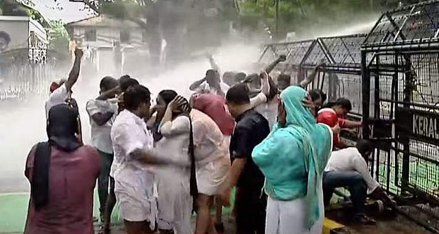 എറണാകുളം ജില്ലയില് കോണ്ഗ്രസ് പ്രവര്ത്തകര്ക്ക് നേരെ പൊലീസ് ജലപീരങ്കിയും ടിയര് ഗ്യാസും പ്രയോഗിച്ചു. കോണ്ഗ്രസ് പ്രവര്ത്തകര് പൊലീസിന് നേരെ കല്ലെറഞ്ഞു. എറണാകുളം മഹാരാജാസ് കോളജിന് സമീപത്തുവച്ച് പൊലീസ് ബാരിക്കേഡ് വച്ച് പ്രവര്ത്തകരെ തടഞ്ഞു. പ്രവര്ത്തകരുടെ ഭാഗത്തുനിന്ന് ആക്രമണം ഉണ്ടായതോടെയാണ് പൊലീസ് ടിയര് ഗ്യാസും കണ്ണീര് വാതകവും ജലപീരങ്കിയും പ്രയോഗിച്ചത്.