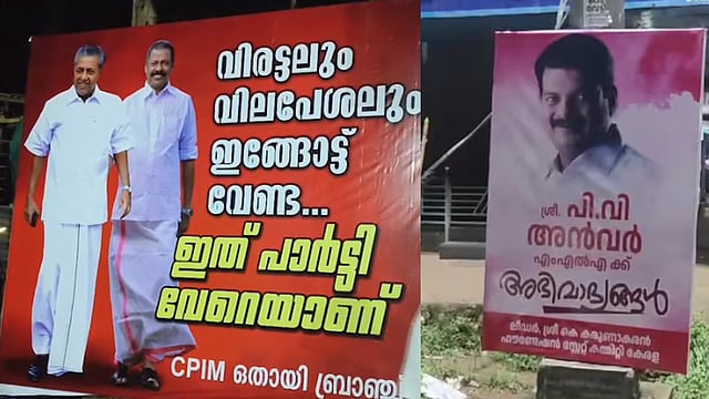 വിരട്ടലും വിലപേശലും ഇങ്ങോട്ട് വേണ്ട, ഇത് പാര്ട്ടി വെറെയാണ് എന്നാണ് ഫ്ലക്സ് ബോര്ഡിൽ എഴുതിയിട്ടുള്ളത്. പിണറായി വിജയന്റെയും എംവി ഗോവിന്ദന്റെയും ചിത്രങ്ങളും ഫ്ലക്സ് ബോര്ഡിലുണ്ട്. സിപിഎം ഒതായി ബ്രാഞ്ച് എന്നും ഫ്ലക്സ് ബോര്ഡിലുണ്ട്.
