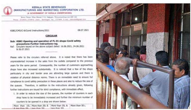 മദ്യശാലകളിലെ ആള്ക്കൂട്ടത്തില് ഹൈക്കോടതി ഇന്നലെ ബെവ്കോയെ അതിരൂക്ഷമായി വിമര്ശിച്ചിരുന്നു. കല്യാണത്തിനും മരണത്തിനും വരെ ആളുകള്ക്ക് നിയന്ത്രണം ഏര്പ്പെടുത്തുമ്പോള്, മദ്യശാലകള്ക്ക് മുന്നില് ഒരു നിയന്ത്രണവുമില്ലെന്ന് കോടതി അഭിപ്രായപ്പെട്ടിരുന്നു. കോടതി വിമര്ശനത്തിന്റെ പശ്ചാത്തലത്തിലാണ് പുതിയ സര്ക്കുലര് ഇറക്കിയിട്ടുള്ളത്.