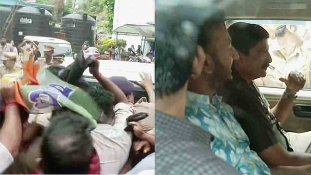 മുദ്രാവാക്യം വിളികളോടെയായിരുന്നു യുവജന സംഘടന പ്രവര്ത്തകരുടെ പ്രതിഷേധം. ഒന്നും രണ്ടുമല്ല, മൂന്നാമത്തെ കേസാണ്, എന്തിനാണ് ഇങ്ങനെയൊരാളെ വെച്ചു പൊറുപ്പിക്കുന്നത് എന്നു ചോദിച്ചുകൊണ്ടായിരുന്നു പ്രതിഷേധം. കനത്ത പ്രതിഷേധത്തെത്തുടര്ന്ന് വന് പൊലീസ് ബന്തവസ്സിലാണ് രാഹുലിനെ പൊലീസ് വാഹനത്തില് നിന്നും പുറത്തിറക്കിയത്. പൊലീസും പ്രതിഷേധക്കാരുമായി ഉന്തും തള്ളുമുണ്ടായി.